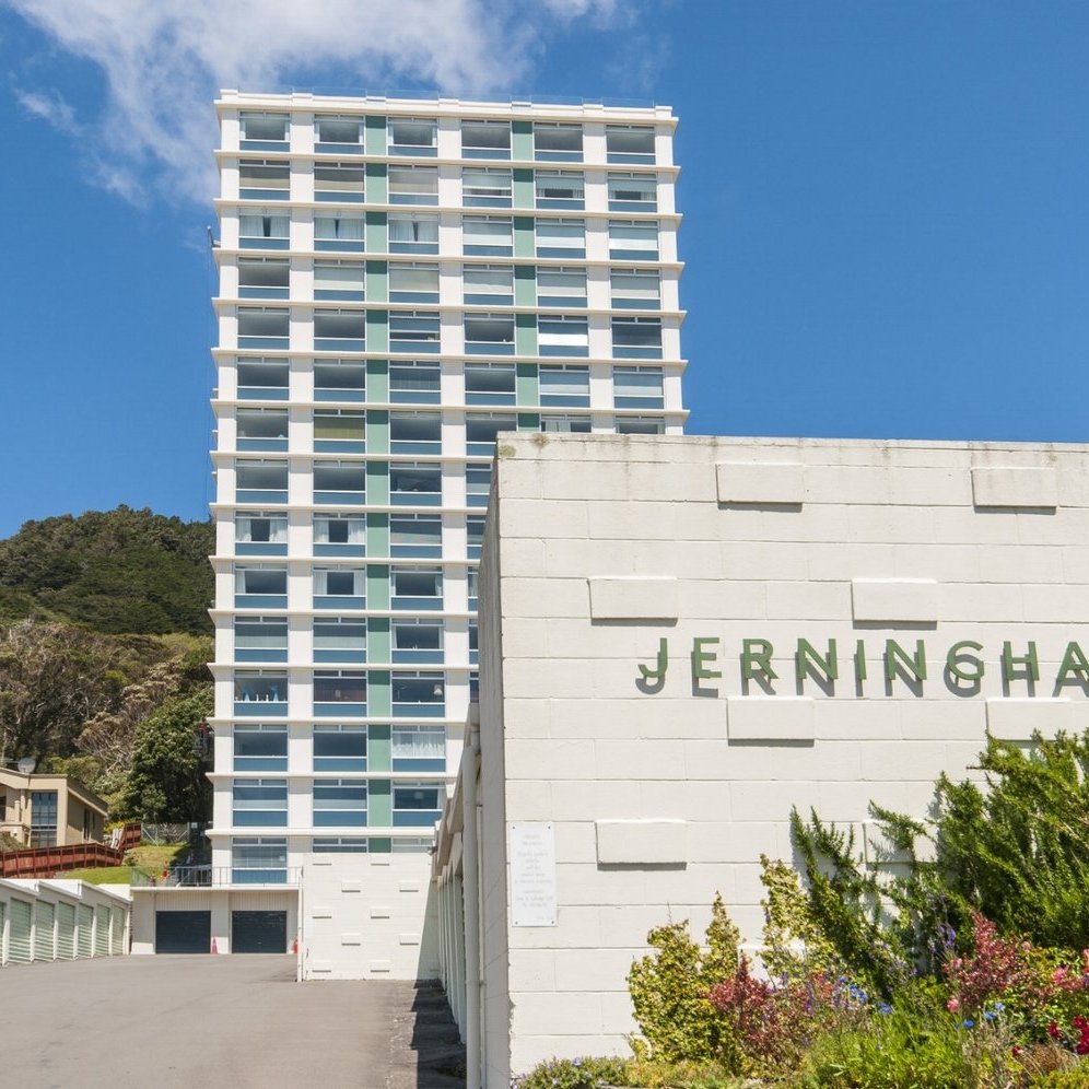 Tightly held and highly sought after, Jerningham is a desirable apartment complex in Wellington’s prestigious Oriental Bay. Only a short stroll to Oriental Parade and the beach, its elevated site makes it remarkably quiet for such a popular location. These company-share apartments set a high standard for contemporary apartment living. The rooftop commands breathtaking views of the bay and the gardens are well cared for. The Company ensures its premises are immaculate with daily facilities management and long term maintenance planning. All you need to do is move in, enjoy the great views, sun, enviable location, and friendly community spirit!